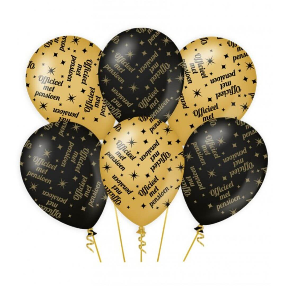 Bestel bij ons deze geweldige ballonnen, in de kleuren, zwart en goud met de tekst: ''Officieel met pensioen.''