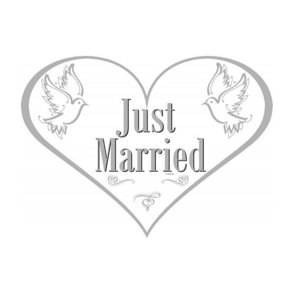 Het is een wit deurbord met de tekst: 'Just Married'Specificaties: