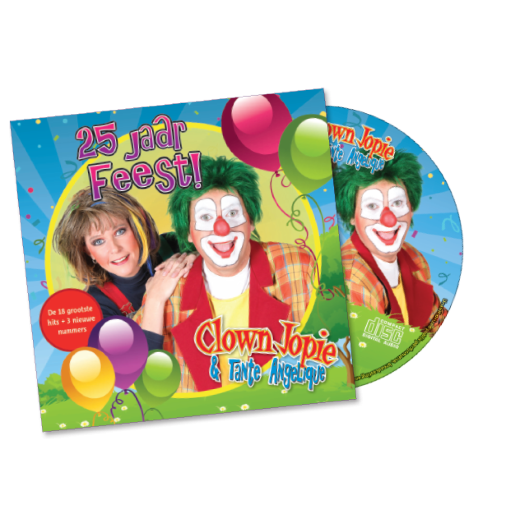 De CD “25 jaar Feest” is een verzamel album van de grootste hits van Clown Jopie en Tante Angelique van de afgelopen 25 jaar.