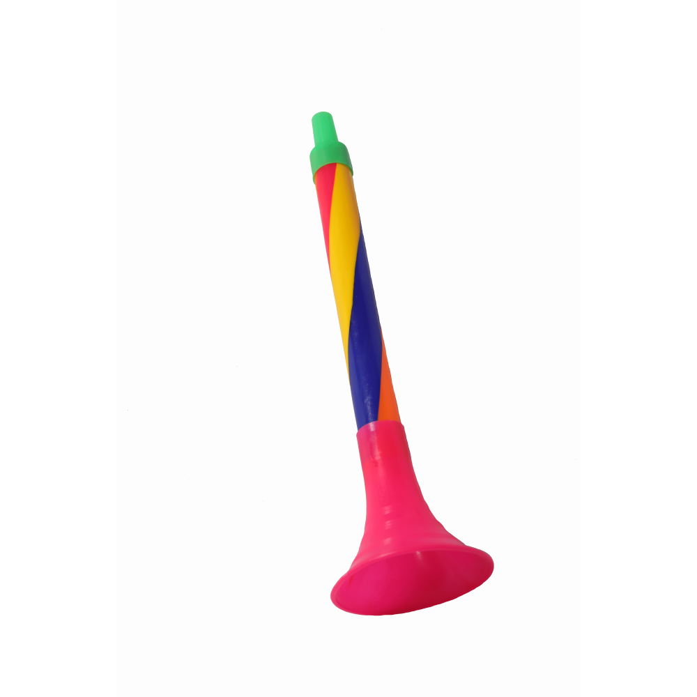 De gekleurde toeter is 36 cm lang.