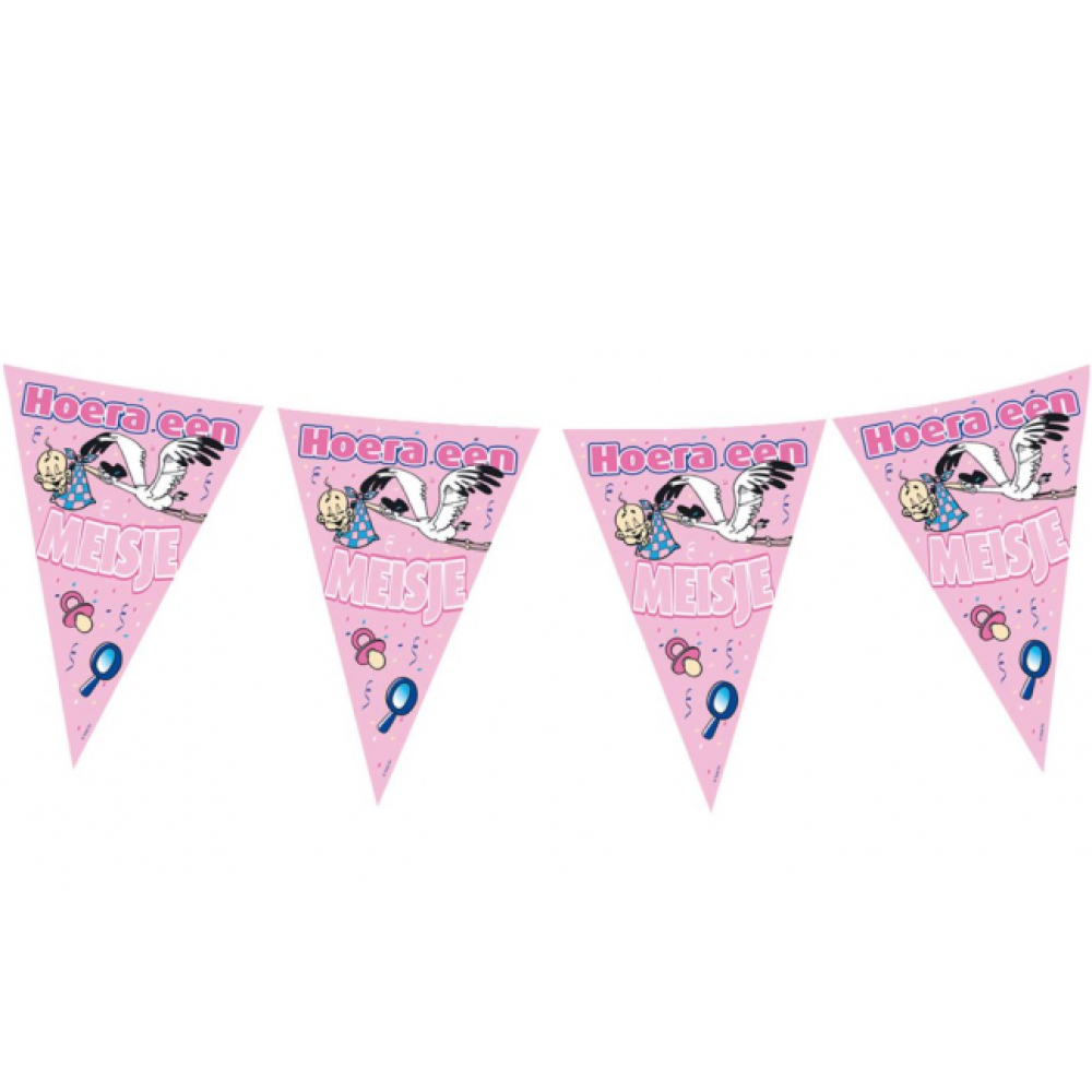 De vlaglijn is tevens vrolijk bedrukt met de tekst: "Hoera een Meisje".