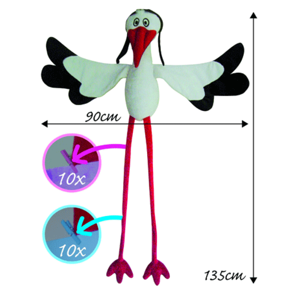 De Mega Raam Ooievaar heeft een spanwijdte van 90 cm.