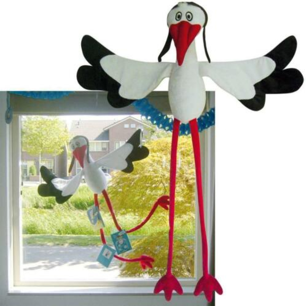 Met deze Mega Raam Ooievaar lijkt het net alsof de ooievaar uw raam is binnengevlogen!