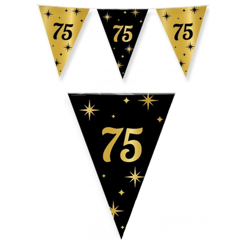 Dubbelzijdig bedrukte vlaglijn 75 jaar, erg leuk om de kamer mee te versieren en zo de jarige te verwelkomen!
