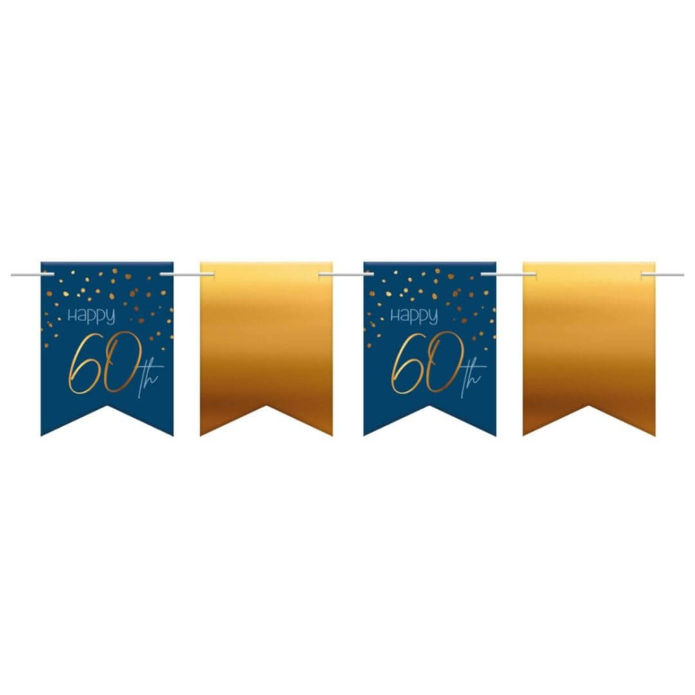 Prachtig blauwe - gouden vlaggenlijn met de tekst: Happy 60th
